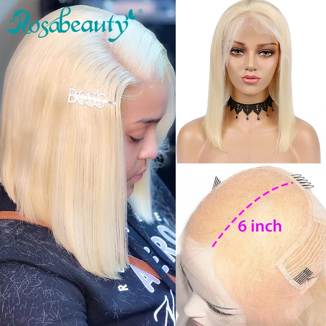Special Price Rosabeauty HD Transparen 613 Ombre Blonde 13x6 Lace Front Human Hair Wigs Brazilian Short Bob Strai with FREE Worldwide Shipping!