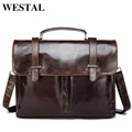 WESTAL men's briefcases genuine leather laptop bag computer bags leather briefcase lawyer/office bags for men carteras hombre